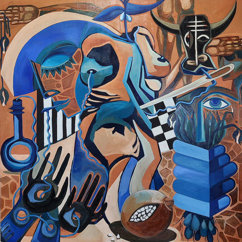 60" x 60" | Oil, oil stick, raw pigment, collected earth on canvas | 2022