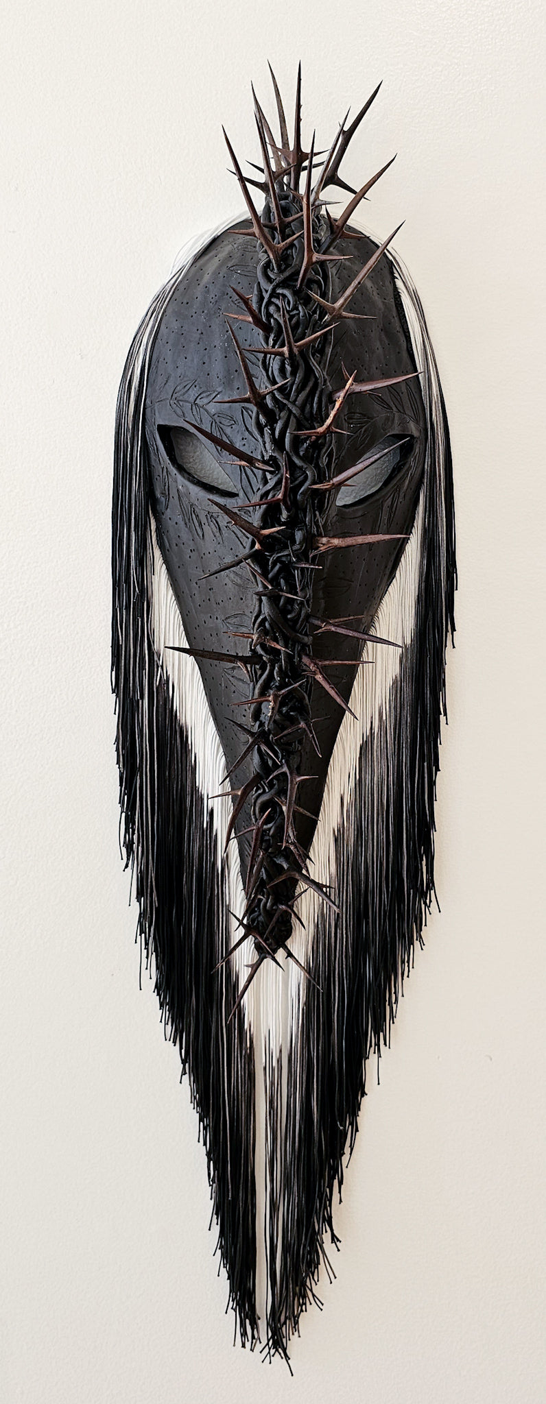 9" x 26" x 9" | Clay, fabric fringe, thorns, acrylic paint | 2025